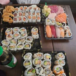 Best take out sushi hands down. Very affordable. Order early and pick up. It's a fish market , so you are getting the freshest fish.